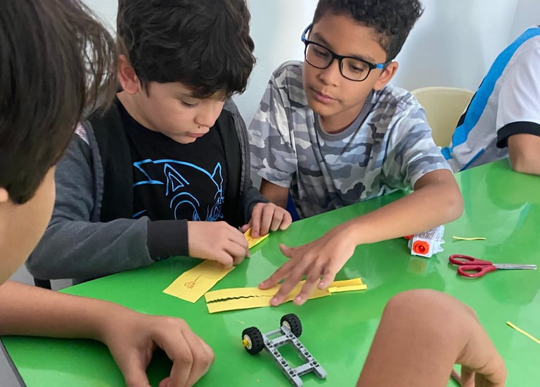 Programa anual (aprox. 8 meses) donde los estudiantes aprenden a su ritmo robótica, programación, electrónica y más. Cada niño trabaja con kits y herramientas según su edad y nivel.
