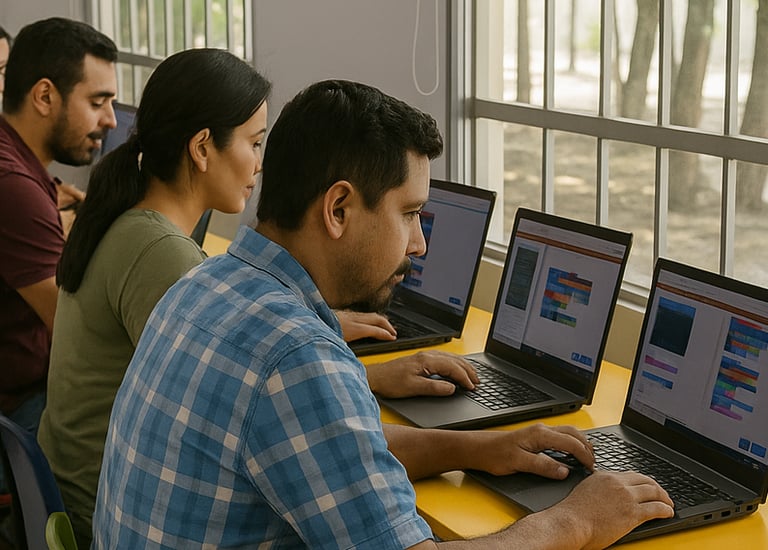 Capacitaciones prácticas para integrar robótica, programación y herramientas STEAM en el aula de manera efectiva.